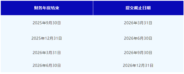 大型实体和非大型非控股实体必须准备年度财务总结,并保存在其注册办公室。常见截止日期: